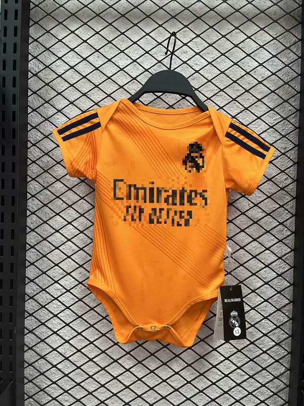 El Body de Bebé Real Madrid Segunda Equipación 2024-2025 es la forma perfecta de vestir a tu pequeño campeón con los colores del orgullo madridista. Con un vibrante color naranja y detalles azul oscuro, esta prenda destaca por su estilo dinámico y diseño moderno, inspirado en la segunda equipación del equipo para esta temporada. 🌟👕