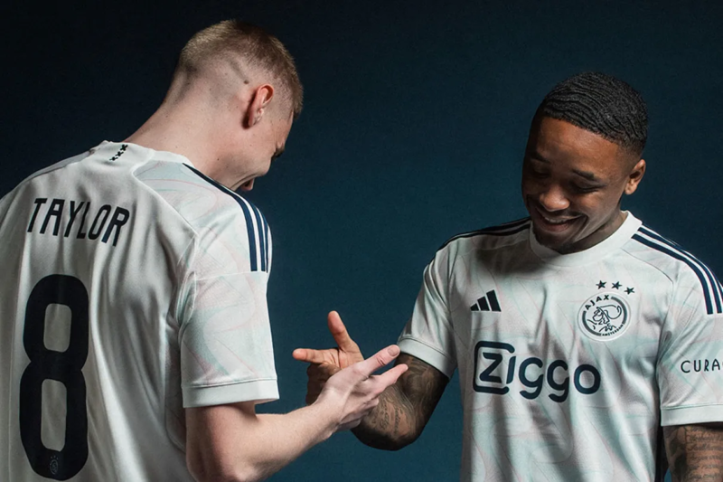 Su combinación de blanco con detalles en negro y un fondo claro y colorido, mientras que en el pantalón corto predomina en negro, brindando una imagen de determinación en cada paso que den. Además, esta camiseta viene con el logo de la marca, el escudo del Ajax y el patrocinador.