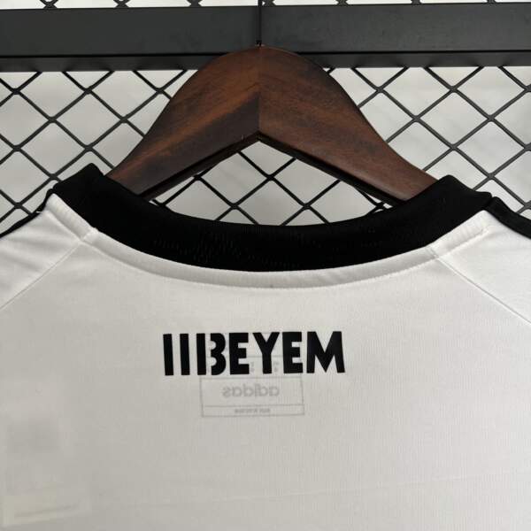 2. Detalles en Negro: Las mangas y los hombros presentan líneas negras que destacan el logo del fabricante y el escudo del equipo, creando un contraste elegante.