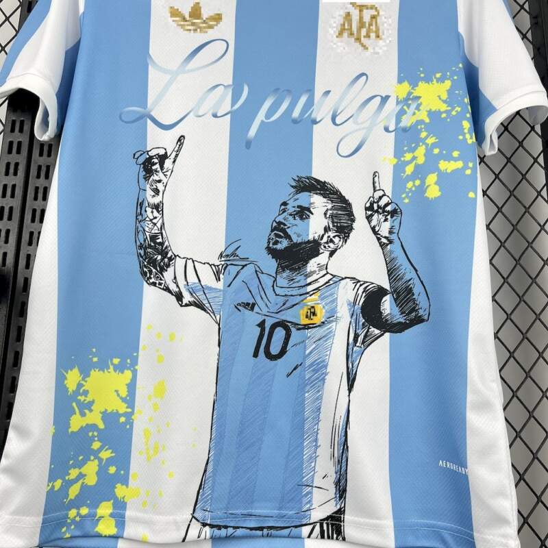 🇦🇷 Celebra medio siglo de pasión con la Camiseta Argentina 50 Aniversario 2024-2025, con diseño artístico y homenaje a “La Pulga” 🔟✨.