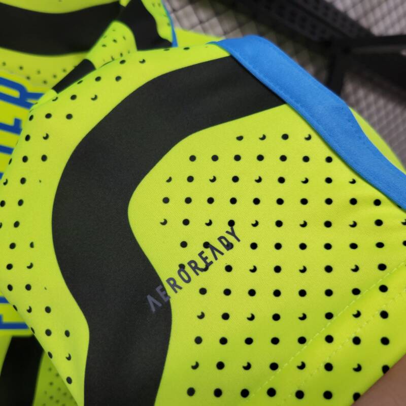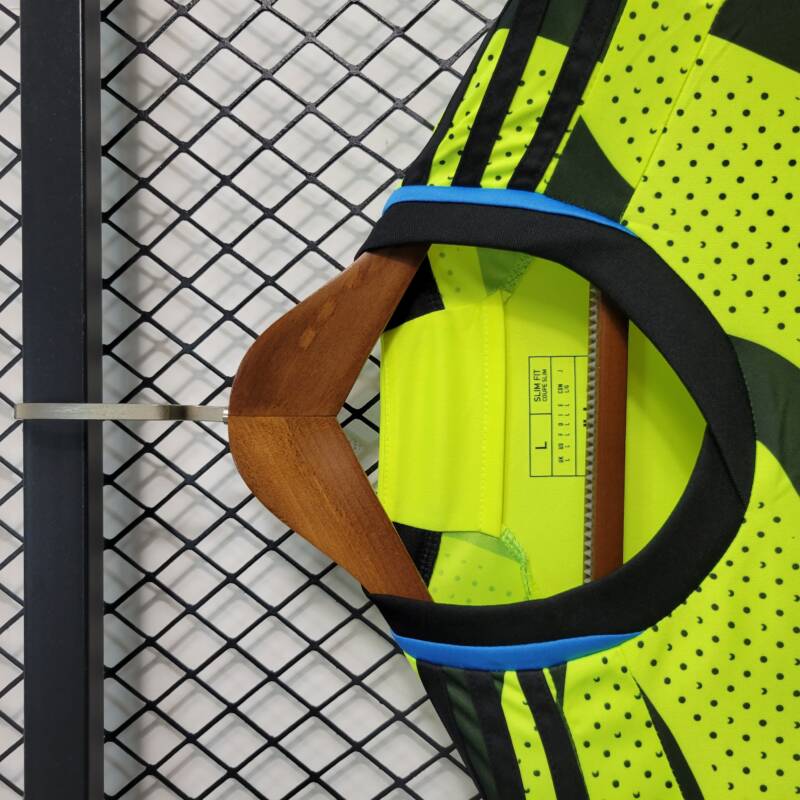 La Segunda Equipacion Arsenal 2024 presenta un diseño verdaderamente cautivador. El amarillo fluorescente es el color predeterminado, y no hay nada que grite «energía» y «emoción» como este tono vibrante. Pero eso no es todo. Los detalles en azul y negro agregan un toque de frescura y estilo a esta camiseta, lo que la convierte en una elección moderna y atractiva. Ya sea que la uses en el estadio o en tu día a día, esta camiseta te hará destacar y mostrar tu pasión por el Arsenal de una manera única.