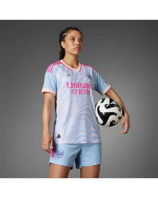 Descubre la Arsenal x Stella McCartney 2023/2024 Azul-Rosa, donde la moda y el fútbol se fusionan en una explosión de emoción. Sé parte de la historia, viste con el alma del Arsenal. Cada curva, cada color, cuenta una historia única que te conecta con la esencia del juego.
