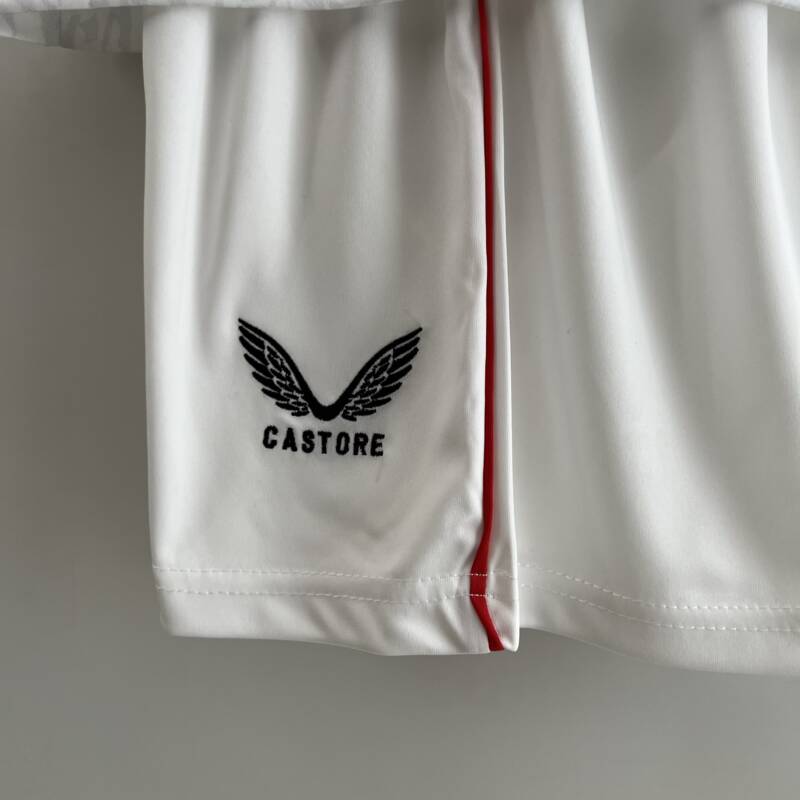 1. Ajuste Comodidad: Pantalón corto blanco con líneas rojas que complementa el conjunto.