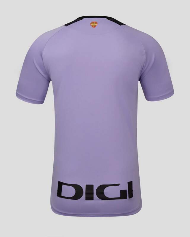 🟣 La camiseta luce una base en morado claro, fresca y llamativa, que aporta un aire completamente nuevo al conjunto bilbaíno.