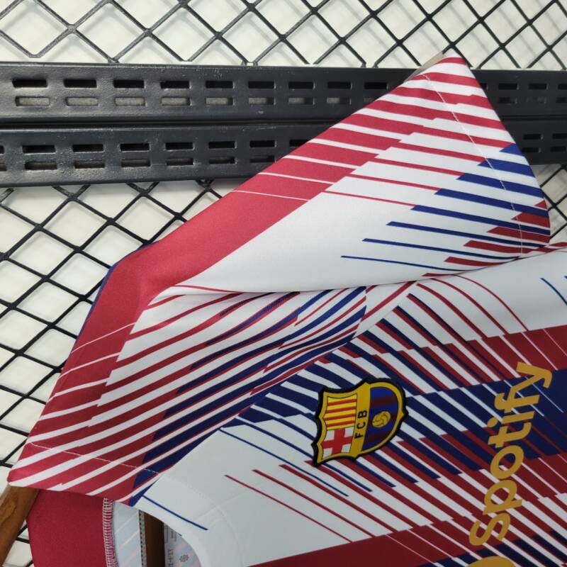Nuestra camiseta de entrenamiento Barcelona está diseñada para enamorarte a primera vista. 😍 Combina los colores emblemáticos del equipo, como el blanco, azul y rojo, en un fondo que crea un impacto visual impresionante. Las líneas dinámicas y elegantes en el diseño no solo honran la historia del club, sino que también le dan un toque moderno y atractivo. Ya sea que estés en el campo de entrenamiento o en las gradas, esta camiseta te hará sentir parte de la magia del Barcelona. ⚽🔥