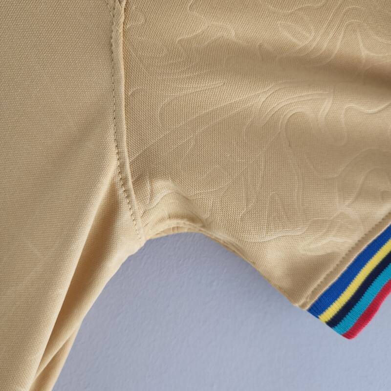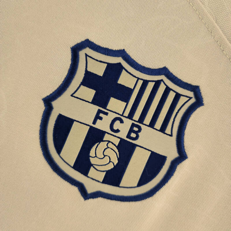Adquiere este producto color crema en este diseño exclusivo y alienta al FC Barcelona en esta nueva temporada bajo la dirección del jugador leyenda y ahora entrenador Xavi Hernández, que busca devolver al FC Barcelona mediante un juego de toque y posesión a la pelea de la Liga Española así como La Champions League, reforzándose con unos de los mejores delanteros del Mundo Robert Lewandowski y Raphinha, uno de los jugadores más talentosos traído desde la Premier League .