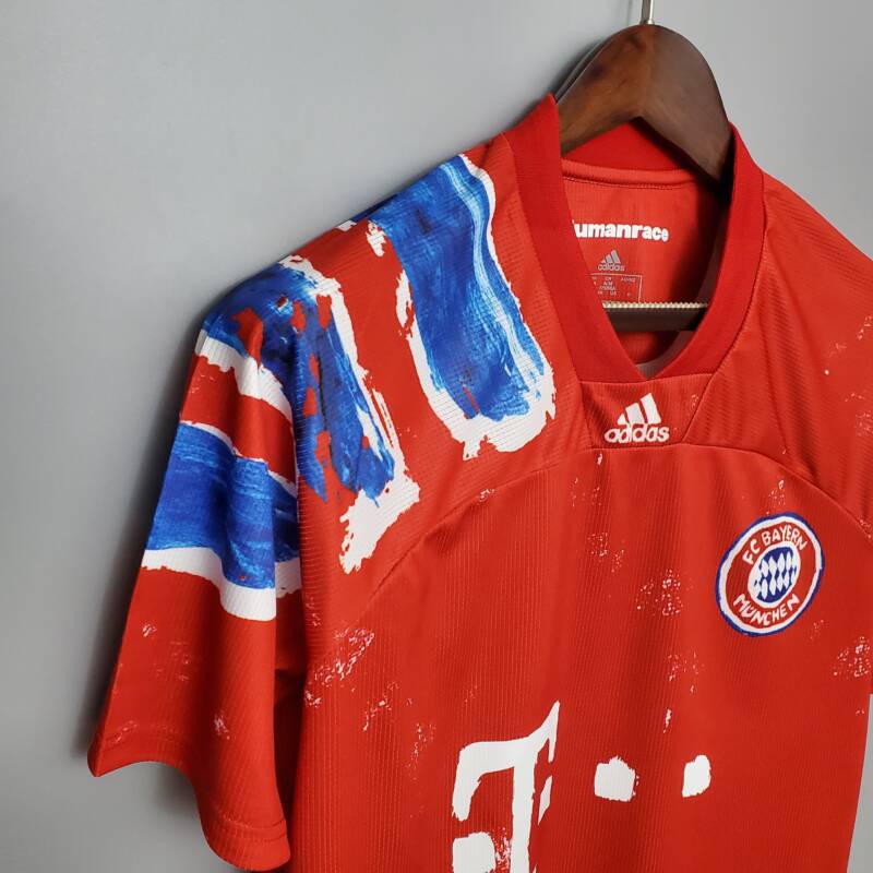 Anima a tu equipo con la equipación del Bayern de Múnich “Humanrace” El tejido mantiene la frescura tanto si estás animando en las gradas como si estás jugando sobre el campo.