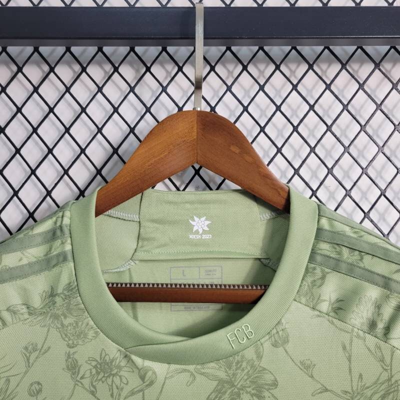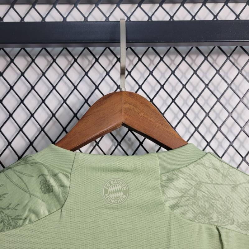 En el corazón de nuestra camiseta Bayern Munich se encuentra un diseño que rinde homenaje a este club legendario. El color predominante es el verde, que evoca la esencia de la ciudad de Munich y el espíritu del equipo. Las franjas y bordes verdes que recorren la camiseta son un tributo a los triunfos y logros del Bayern Munich a lo largo de los años. Pero lo que realmente destaca es el diseño de dibujo de flores que adorna toda la camiseta. Este motivo floral representa la belleza del juego y la pasión que los aficionados sienten por el fútbol. Cada vez que te pongas esta camiseta, estarás llevando contigo un pedazo de la historia del Bayern Munich y mostrando tu amor por el equipo de una manera única y elegante.