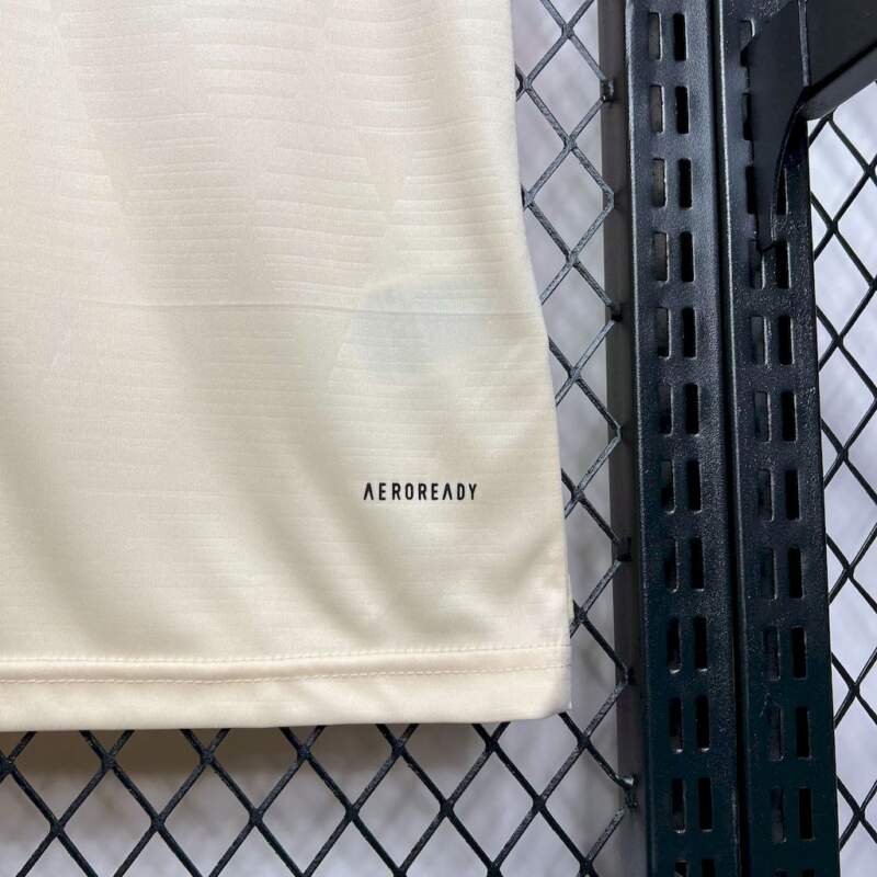 - Color principal: La camiseta presenta un beige-amarillo claro 🌼✨ que ofrece una apariencia fresca y moderna, ideal para los seguidores del equipo que buscan algo diferente.