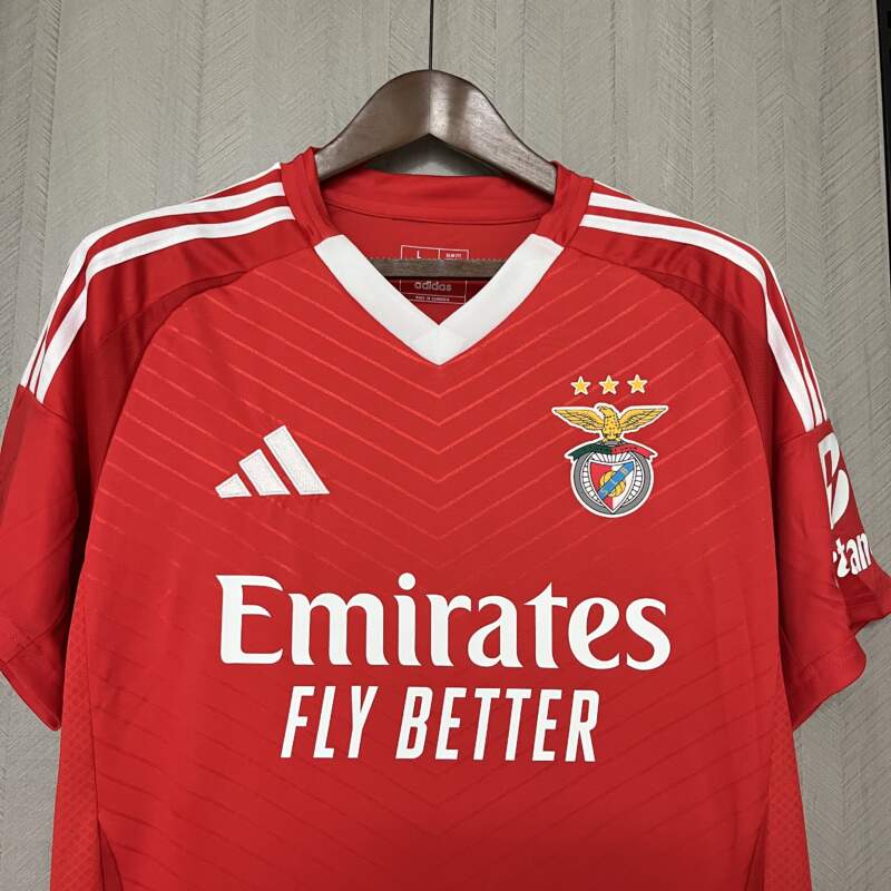 🔴 Diseño tradicional en rojo vibrante – El color característico del Benfica domina la camiseta, reflejando la identidad y pasión del club.