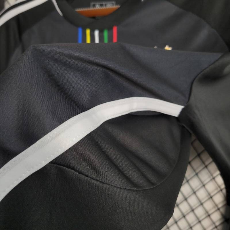 Combina el negro y blanco haciendo un diseño muy llamativo, las líneas coloradas en el centro de la camiseta le dan el toque mas autentico. LLeva el logo, el escudo imponente y su patrocinador.