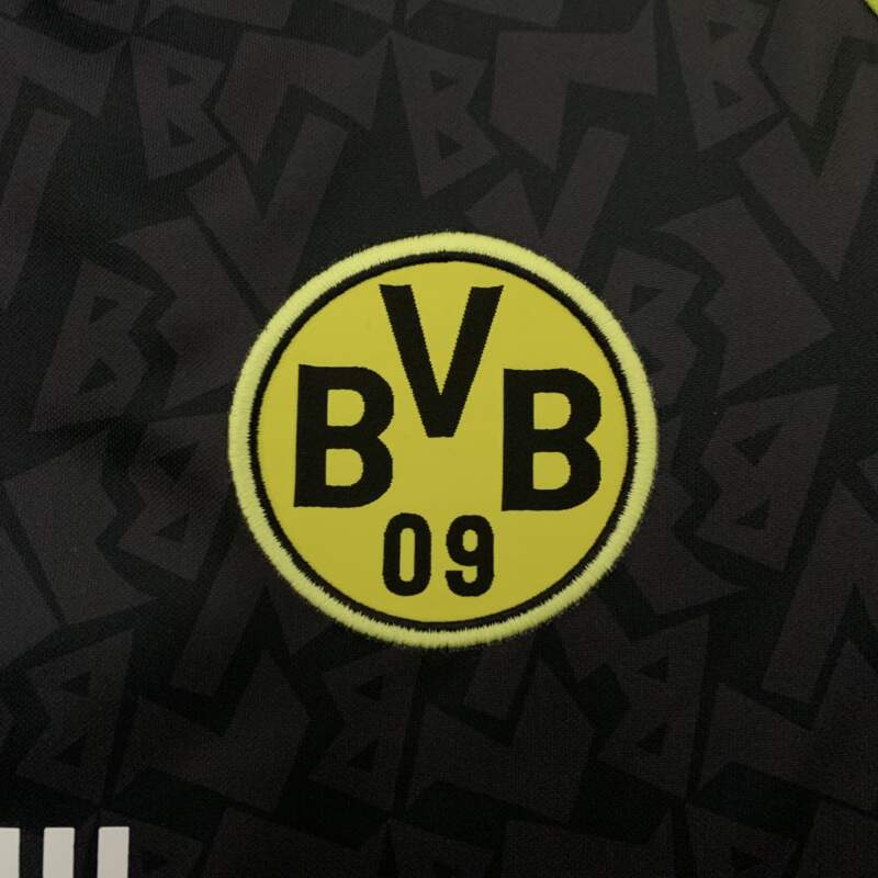 - Detalles en amarillo y blanco 🟡⚪: Presentes en el cuello, mangas y logotipos, destacando el contraste característico del Dortmund.