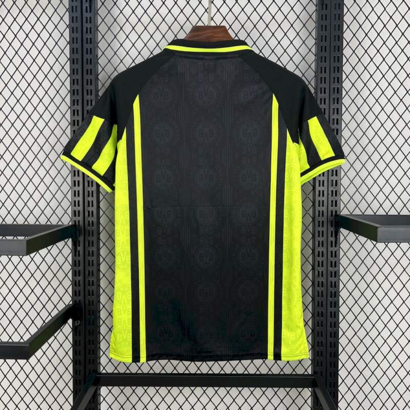 - Inspiración de Campeones 🏆: Esta camiseta revive la temporada más gloriosa del Borussia Dortmund, cuando se coronó campeón de la Liga de Campeones 1996-1997. ¡Un símbolo de la historia del fútbol alemán!