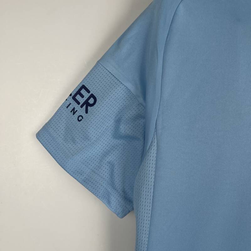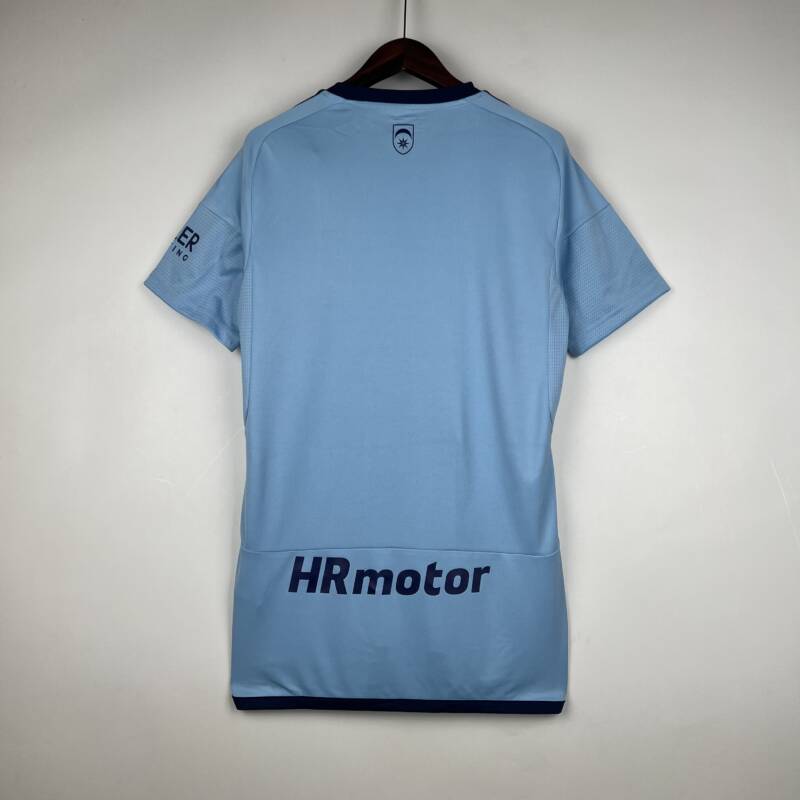 La segunda equipación Osasuna es un auténtico derroche de estilo. Su diseño, en el que predomina un celeste tenue, evoca la pasión y la historia de este gran equipo. Pero eso no es todo. Los detalles en azul marino, presentes tanto en las tiras de los hombros como en el cuello, añaden un toque de elegancia y contraste que la hace única.