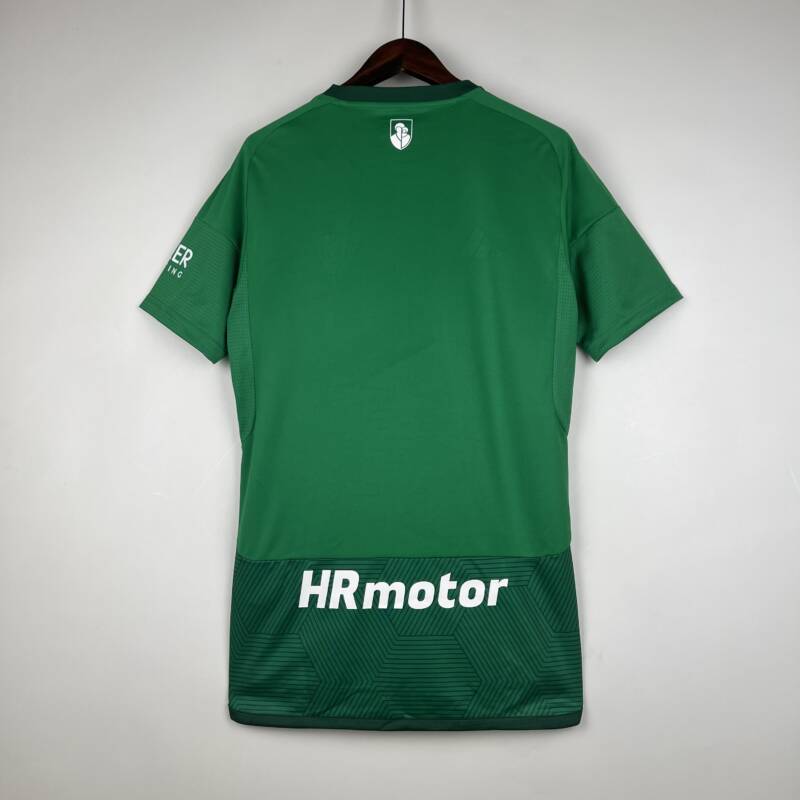 Osasuna apuesta por un color verde oscuro que cubrirá completamente la camiseta. Desde las mangas hasta el cuello, pasando por las tres icónicas tiras de los hombros, este vibrante tono verde te envolverá en un aura de estilo y pasión por el fútbol.