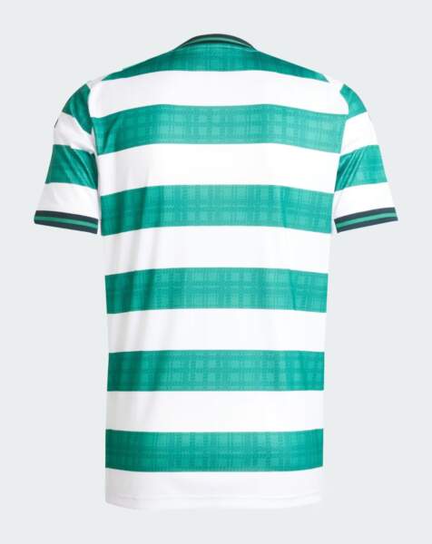 1. Diseño clásico renovado: Mantiene las tradicionales franjas verdes y blancas, con un patrón actualizado que aporta frescura sin perder la esencia histórica del club.