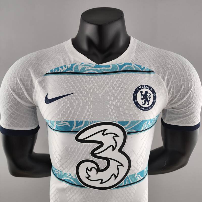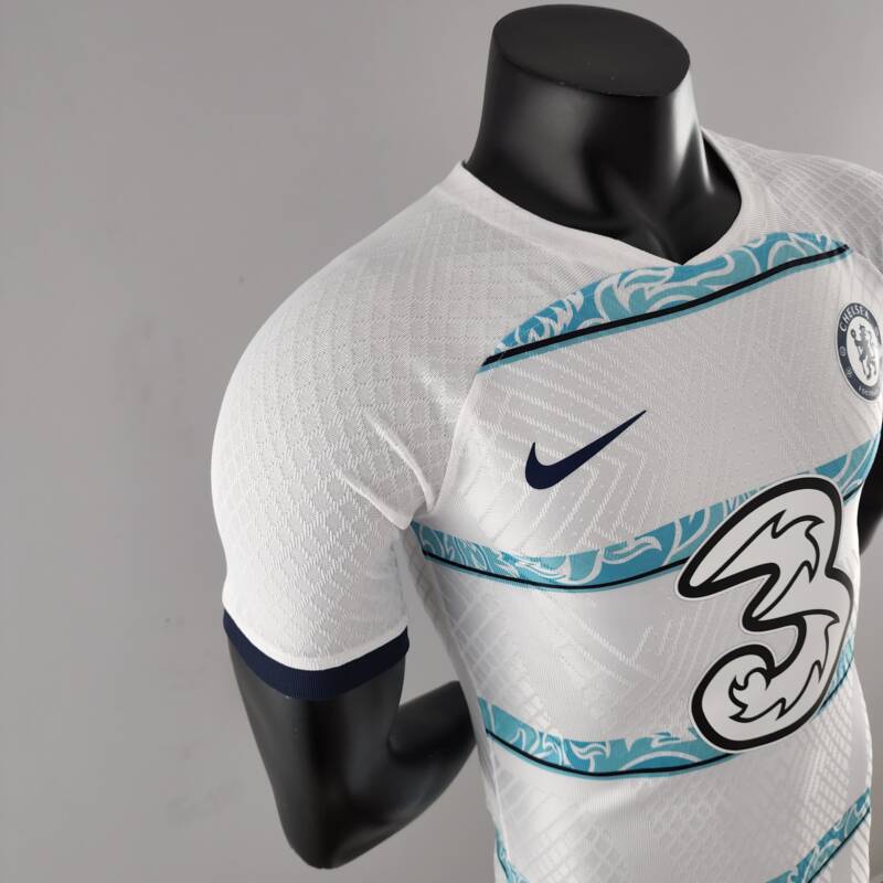 Camiseta del Chelsea segunda equipación 2022/2023 versión jugador, diseñada con un corte entallado y tecnología de absorción para el secado rápido de la transpiración, permitiéndote rendir al máximo dentro del campo de juego, además de ofrecerte un confort único y adaptarse a tu movimientos.