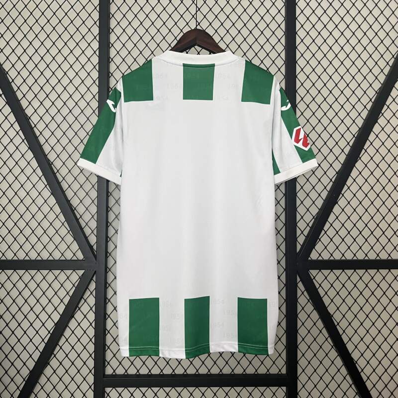 - Diseño Tradicional: Esta camiseta luce el icónico color blanco con detalles en verde, un homenaje a los colores históricos del Córdoba CF. Las franjas verticales verdes aportan un toque distintivo y clásico. 🤍💚⚽