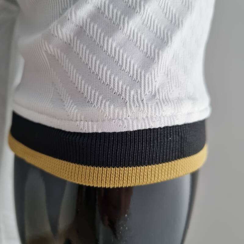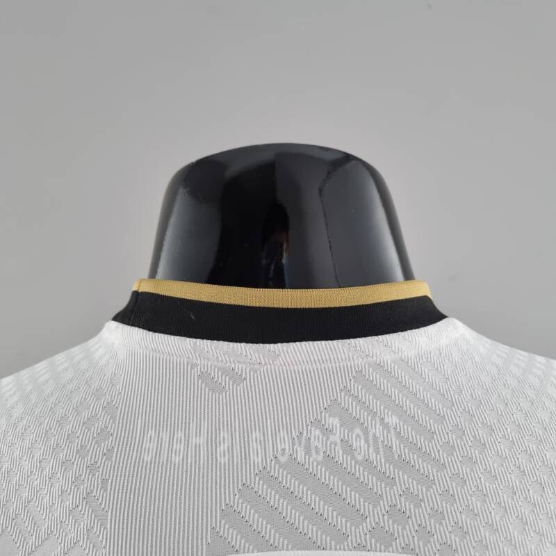 - Color: Blanco, negro y dorado, colores tradicionales del equipo.