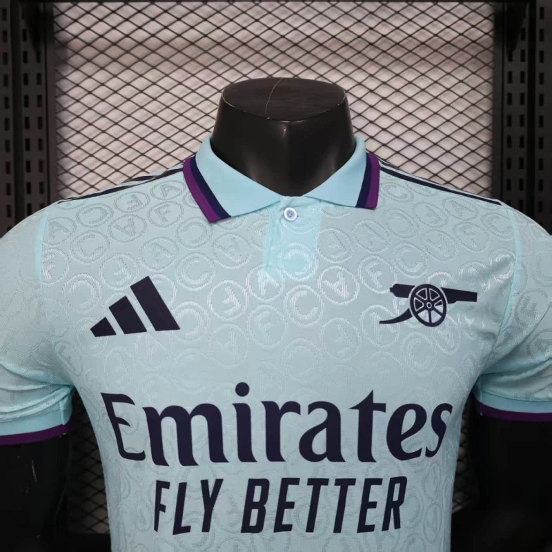 La Camiseta de Entrenamiento Arsenal Versión Jugador 2025-2026 deslumbra con una combinación moderna y audaz: un elegante tono celeste como base, complementado por detalles en negro que refuerzan su estética potente y minimalista. Diseñada para los que viven el fútbol con intensidad, dentro y fuera del campo.