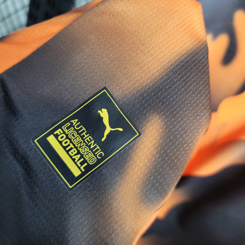 Esta camiseta es mucho más que una simple prenda deportiva. Es una obra maestra de diseño que captura la esencia del equipo de Marsella. En un elegante tono negro 🖤, el diseño de la tela presenta repetidos efectos en naranja 🧡 que evocan la imagen de un volcán en erupción 🌋, simbolizando la pasión y la fuerza del equipo. El blanco se destaca en el logo del equipo, el escudo y los patrocinadores ⚪, creando un contraste vibrante que llama la atención. Llevar esta camiseta es como llevar un pedazo del estadio contigo a donde quiera que vayas, un símbolo de tu amor inquebrantable por el Marsella. ❤️