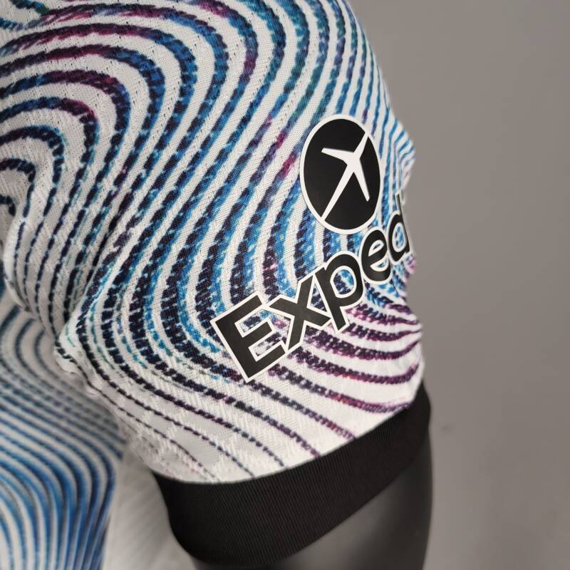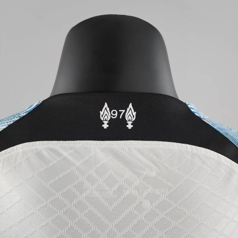 Apoya al Liverpool en esta nueva temporada adquiriendo está camiseta en blanco, azul y morado que resalta la historia del club y viste con orgullo el escudo del Liverpool.