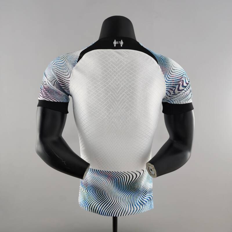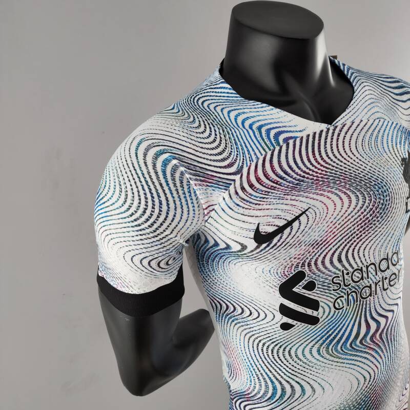 Camiseta del Liverpool segunda equipación 2022/2023 versión jugador, diseñada con un corte entallado y tecnología de absorción para el secado rápido de la transpiración, permitiéndote rendir al máximo dentro del campo de juego, además de ofrecerte un confort único y adaptarse a tu movimientos.
