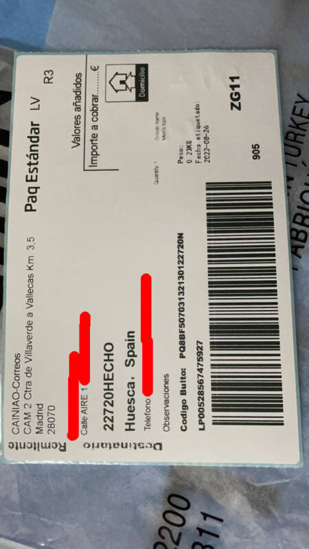 • Envío del comprobante de envío y fotografía del producto por correo electrónico y whatsapp.