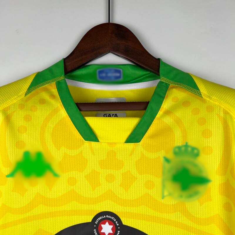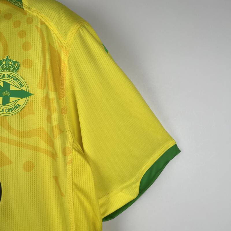 La camiseta deportivo de la Coruña es mucho más que una simple prenda deportiva; es una declaración de amor por tu equipo. Su diseño cautivador presenta el color amarillo como predominante, una elección que refleja el espíritu vibrante y enérgico del Deportivo de la Coruña. Pero eso no es todo, porque esta camiseta está repleta de detalles fascinantes. Los bordes del cuello y las mangas están realzados con un atractivo tono de verde, agregando un toque de frescura y originalidad al conjunto. Esta combinación de colores icónicos no solo rinde homenaje a tu equipo sino que también te garantiza lucir con estilo en cualquier ocasión. 🟡🟢