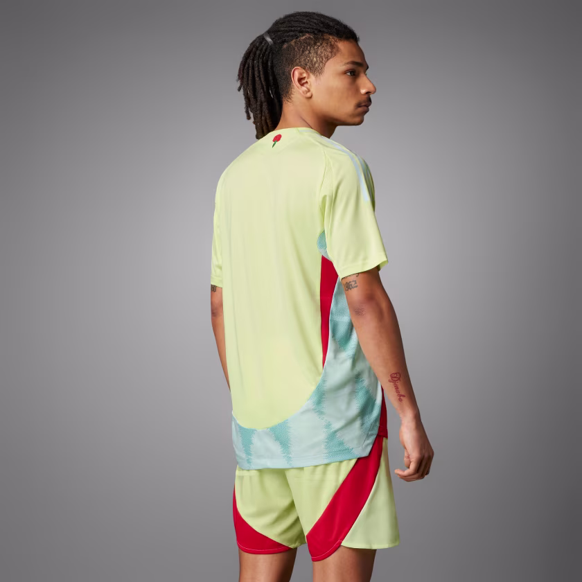 - Ajuste Comodidad: Pantalón corto amarillo con franjas rojas que complementa el conjunto.