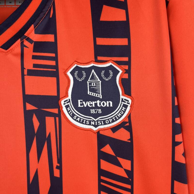 Nuestra segunda equipación del Everton es un tributo a la rica historia del club y a una era icónica del fútbol. Hemos optado por una particular combinación de colores que se utilizó en la década del noventa, con el coral como color predominante. El característico azul del Everton se hace visible de manera elegante en el cuello y el tramado del frente, formando bastones verticales que rinden homenaje a los momentos memorables de esa época. Este diseño nostálgico no solo es atractivo, sino que también muestra tu apoyo inquebrantable al Everton FC.