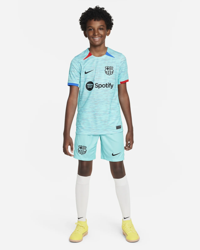 ¡Bienvenidos al mundo del fútbol y la emoción de apoyar al FC Barcelona! Es una obra maestra en turquesa. En esta página, te presentamos la camiseta Barcelona tercera equipación para niños en la temporada 2023/2024.