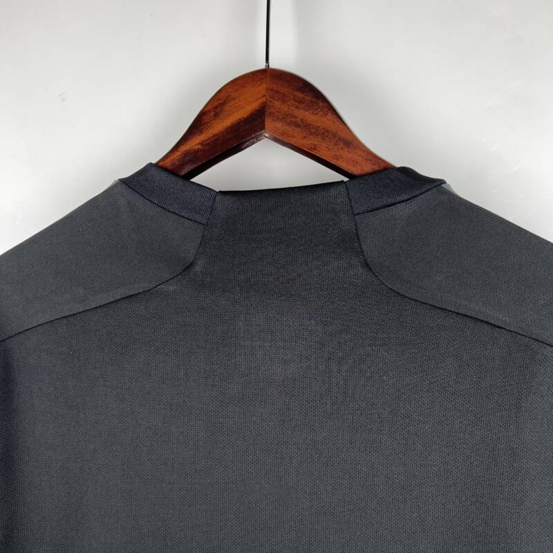 La camiseta de Flamengo 2024 es una verdadera obra maestra en términos de diseño. El color predominante es el negro, que le otorga una elegancia y sobriedad únicas. Sin embargo, lo que realmente hace que esta camiseta se destaque son los detalles en gris que decoran los laterales y el borde inferior. Estos elementos añaden un toque de modernidad y estilo al diseño. Pero eso no es todo. Lo que hace que esta camiseta sea aún más especial son las tres tiras y el logo del club. Estos elementos llevan un efecto iridiscente que se caracteriza por variar sus colores según la luz.