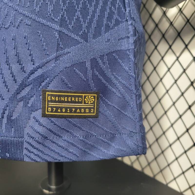 En el corazón de la camiseta Francia 2023, el clásico azul marino persiste como una tonalidad que evoca glorias pasadas y emociones presentes. Pero eso no es todo: los bordes del cuello y las mangas también abrazan esta hermosa tonalidad, creando un balance perfecto entre tradición y frescura. Los emblemas de la camiseta, en un elegante tono dorado, añaden un toque de distinción y resaltan el orgullo de la selección.