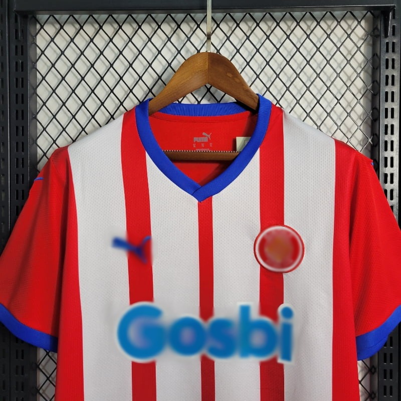 Colores Emblemáticos: Rojo, Blanco y Azul: La combinación de colores en la Camiseta Girona 2024 va más allá de la estética; es una expresión de la identidad del club. El rojo, blanco y azul se entrelazan armoniosamente, reflejando la historia y la tradición del Girona FC.