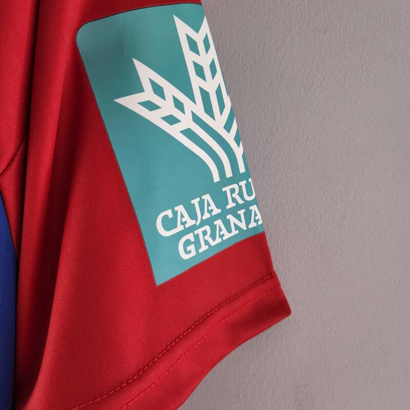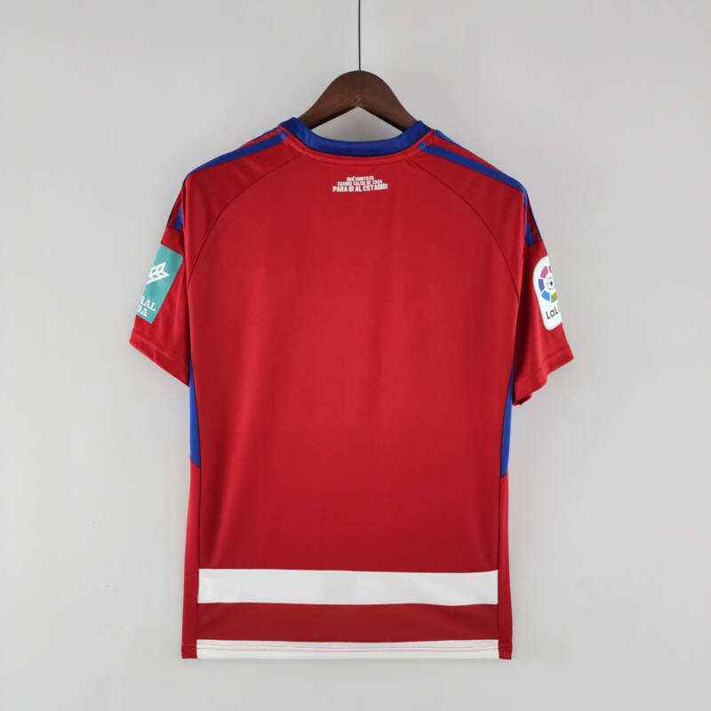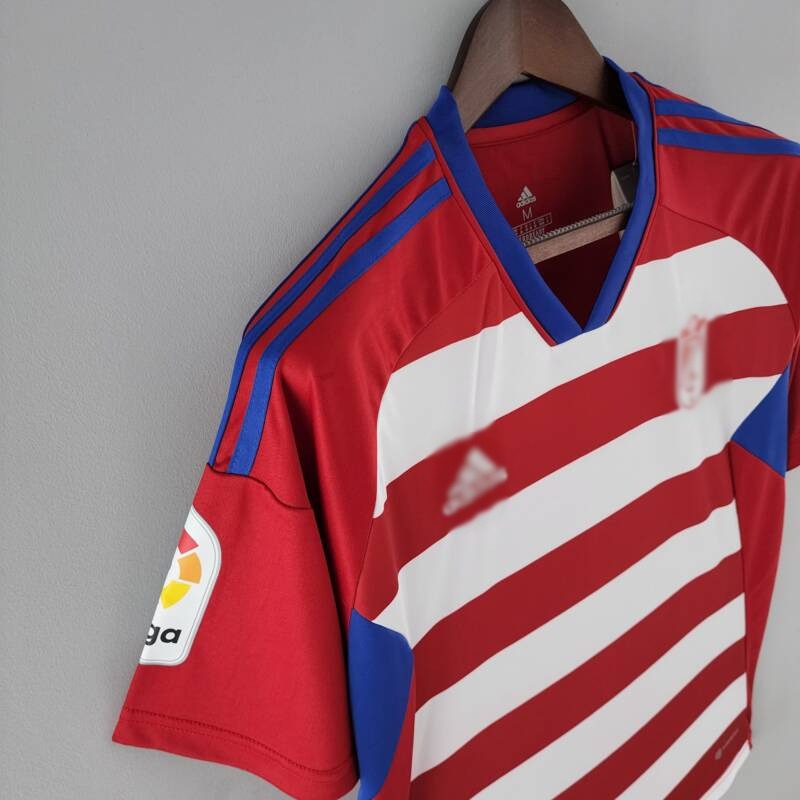 Apoya al Granada en esta nueva temporada de la La Liga 2022/2023 adquiriendo está camiseta en color roja, blanca y azul, colores históricos del club y viste con orgullo el escudo del Granada.