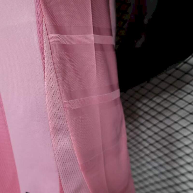 🔹 Diseño Exclusivo y Ajuste Atlético – El color rosa «Light and Easy Pink» mantiene la esencia vibrante del Inter Miami, con detalles en negro que aportan un toque elegante. Su corte slim fit se adapta al cuerpo, brindando un look estilizado y moderno.