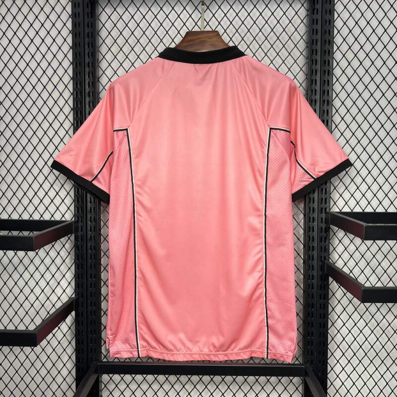 Revive los días de gloria de la Juventus con la Camiseta Retro Segunda Equipación 1997-1998 🎉⚽️, celebrando la temporada del centenario del club. Este diseño icónico rememora la primera camiseta de la Juventus, que también era rosa y negra, uniendo historia y estilo en una sola prenda. 💖⚫✨