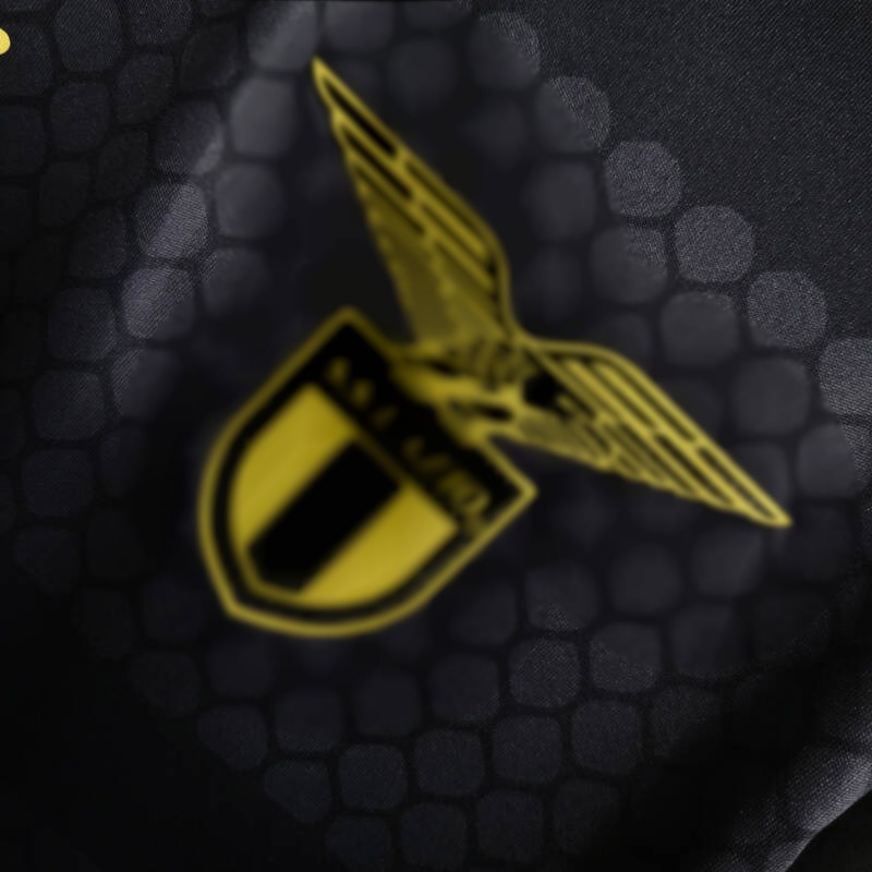 El diseño de la camiseta Lazio es simplemente deslumbrante. La combinación de negro y dorado no solo es elegante, sino que también refleja la grandeza y la historia del club. El tramado en el frente, que evoca una armadura, simboliza la fortaleza y la determinación de los jugadores del Lazio en cada partido. Cada detalle ha sido cuidadosamente pensado para que luzcas con estilo y demuestres tu devoción por el equipo en cada momento. Ya sea en el estadio o en cualquier otro lugar, esta camiseta te destacará entre la multitud.