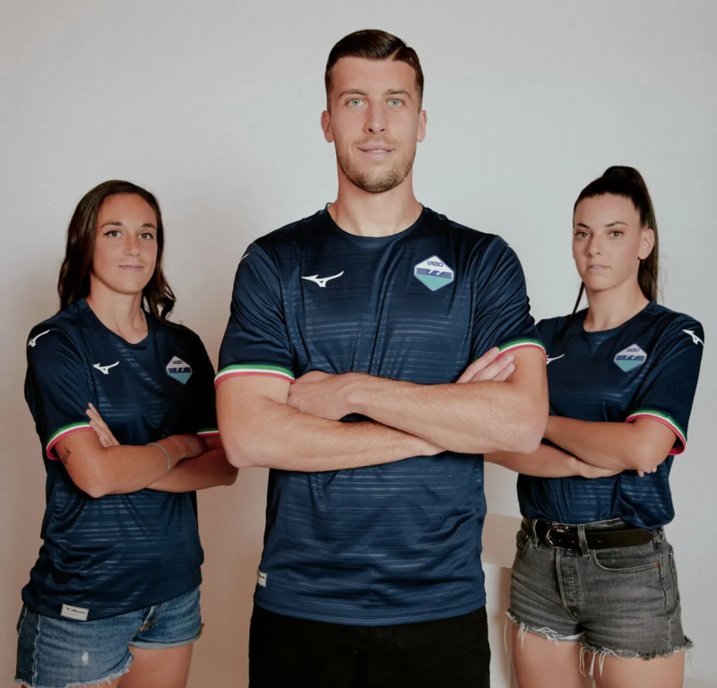 Aprovechando los 50 años del primer título de la liga, nuestra segunda equipacion Lazio es una verdadera obra de arte en términos de diseño. El azul, el color base, rinde homenaje a la rica historia del club. Lo que la hace aún más especial es el detallado tramado de rayas que adorna el frente de la camiseta. Este patrón evoca el legado de victoria y determinación del equipo, recordándonos las épicas hazañas que han marcado la historia del SS Lazio. Además, los colores de la bandera italiana que adornan los bordes de las mangas son un símbolo de la pasión y el orgullo nacional que esta segunda equipacion lazio representa.