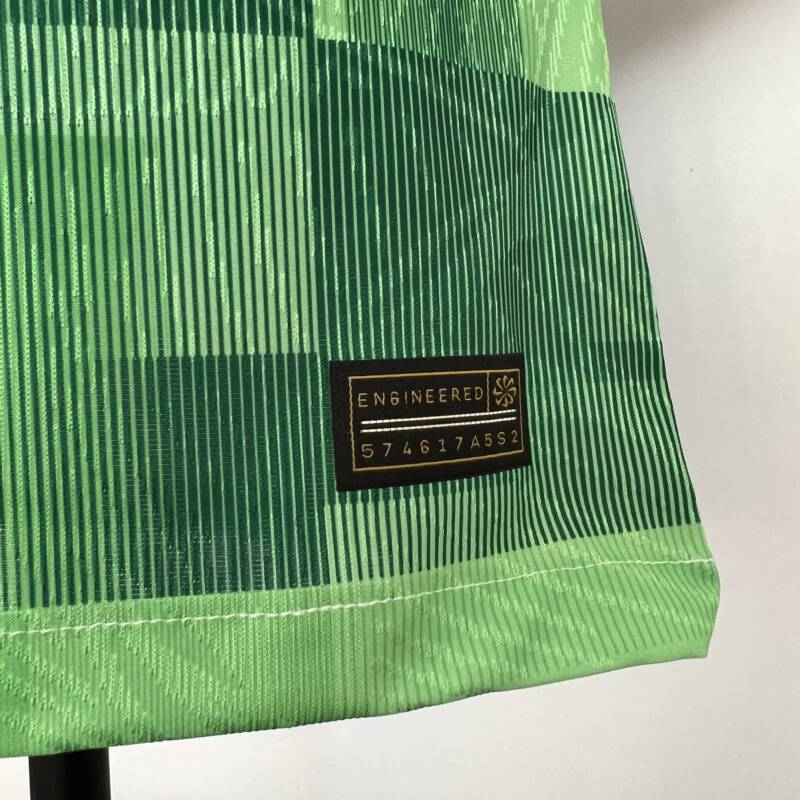 El diseño de esta camiseta es impresionante, con una combinación de verde y blanco que crea un estampado único y llamativo. El patrón de la camiseta se inspira en el famoso equipo de los años 90 y cuenta con detalles elegantes y modernos. La camiseta Liverpool Segunda Equipación 2023/2024 Versión Jugador es una mezcla perfecta de tradición y modernidad, ideal para los fanáticos más exigentes.