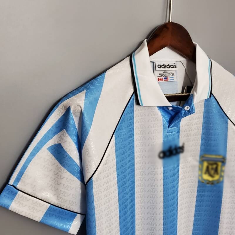 😍 Linda Camiseta Local Retro de Argentina del año 1996/97. El tejido mantiene la frescura tanto si estás animando en las gradas como si estás jugando sobre el campo.