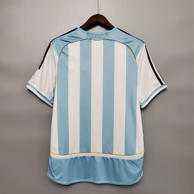 Camiseta local retro de Argentina del mundial de Alemania 2006. El tejido mantiene la frescura tanto si estás animando en las gradas como si estás jugando sobre el campo, esta tecnología hace que el cuerpo se mantenga seco y fresco.