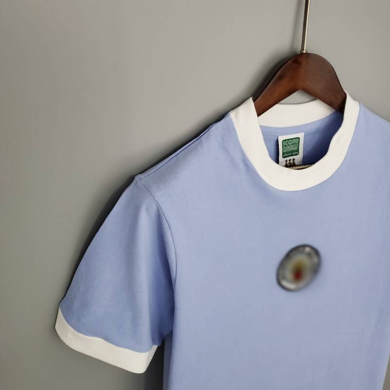Camiseta retro del Manchester City de la temporada 1972. El tejido mantiene la frescura tanto si estás animando en las gradas como si estás jugando sobre el campo.