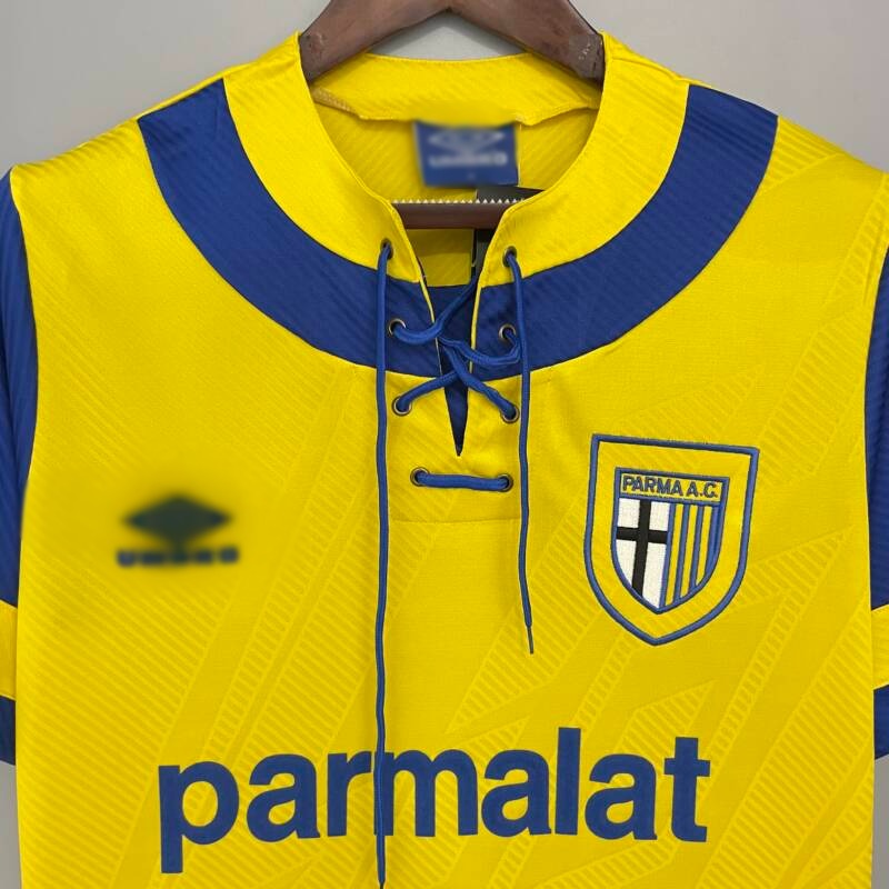 Camiseta local retro del Parma de la temporada 1994/95. El tejido mantiene la frescura tanto si estás animando en las gradas como si estás jugando sobre el campo.