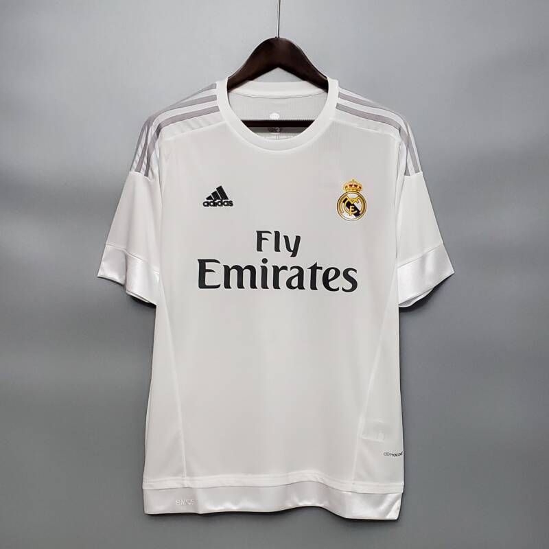 Camiseta local retro del Real Madrid de la temporada 2015/16. El tejido mantiene la frescura tanto si estás animando en las gradas como si estás jugando sobre el campo.