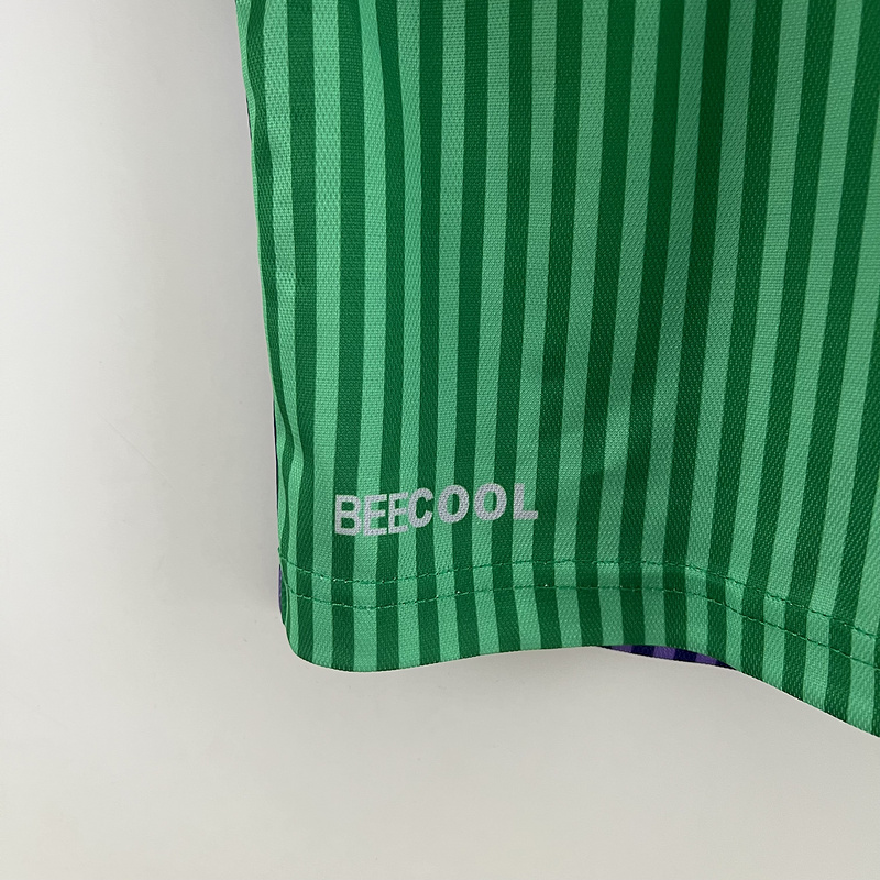 1. Diseño: La camiseta con el color verde profundo y el morado contrastan armoniosamente, creando un look distintivo que captura la esencia única del equipo.