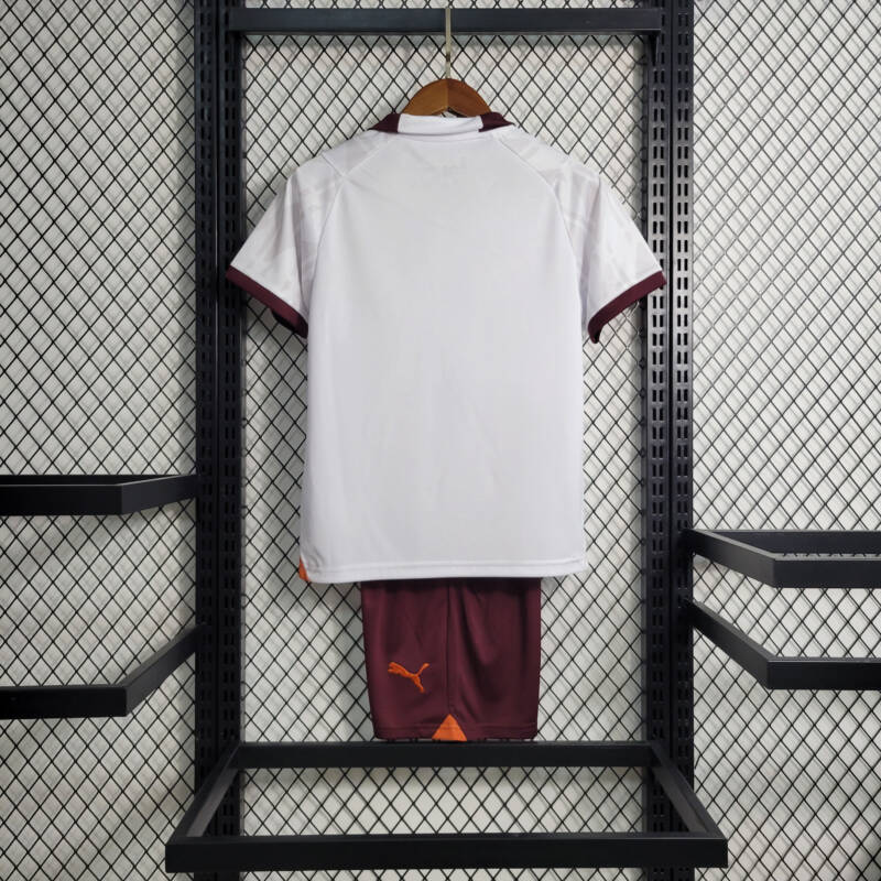 Bienvenidos a la segunda equipación del Manchester City para la temporada 2023/2024, especialmente diseñada para los más pequeños fans del equipo.