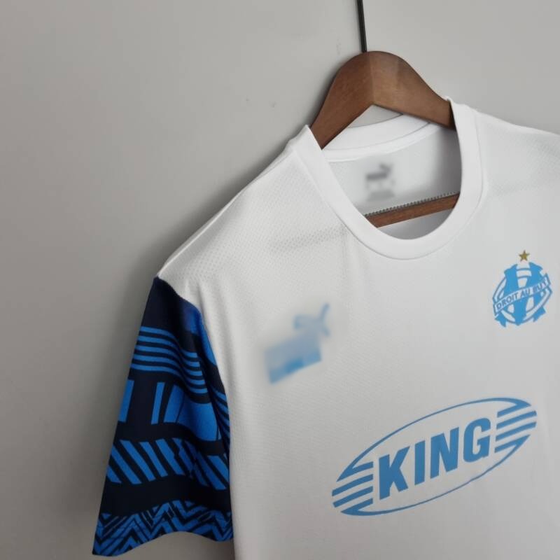 Camiseta del Olympique de Marsella Edición Heritage Blanca 2022/2023, diseñado con un corte clásico y una tecnología de absorción para el secado rápido de la transpiración, permitiéndote rendir al máximo dentro del campo de juego, además de ofrecerte un confort único y adaptarse a tus movimientos, puedes combinarla también junto a otras prendas dándole un toque personal.