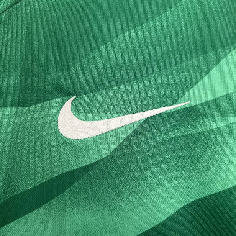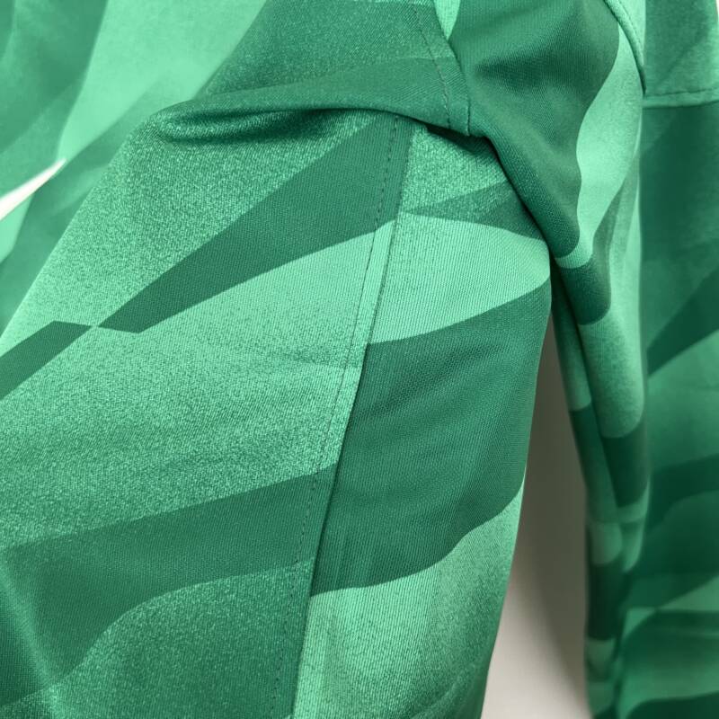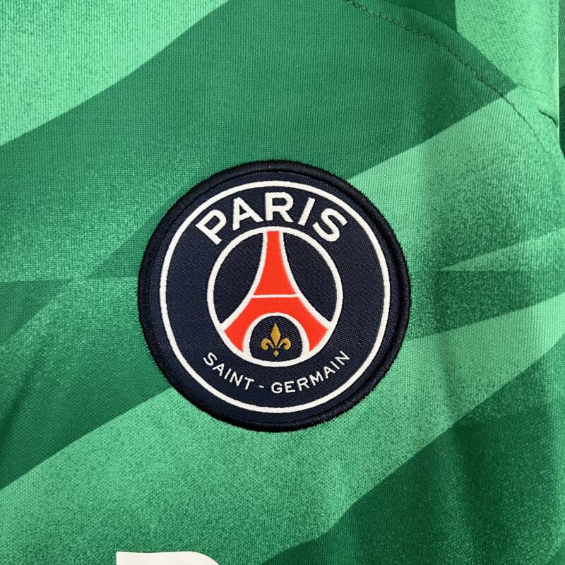 🎨 El diseño de la camiseta de arquero PSG es una verdadera obra maestra. El verde predominante evoca la frescura de un campo de juego, mientras que los detalles frontales hacen un guiño a la belleza de la naturaleza. 🔄 El cuello redondo añade un toque de elegancia, y el logo y el patrocinador en color blanco resaltan de manera impactante sobre el fondo verde. Esta camiseta no solo es una prenda deportiva, sino también una declaración de estilo. Al usarla, estarás demostrando tu pasión por el PSG de una manera única y atractiva. 🔥👕